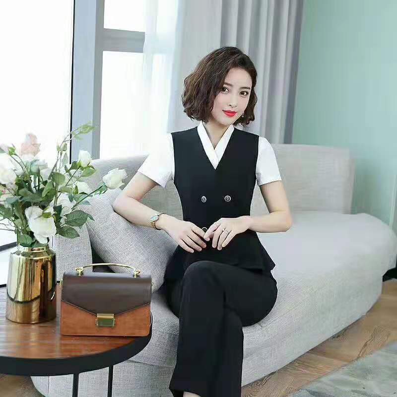 夏裝女款短袖襯衫職業(yè)套裝|馬甲半身裙|高端套裙